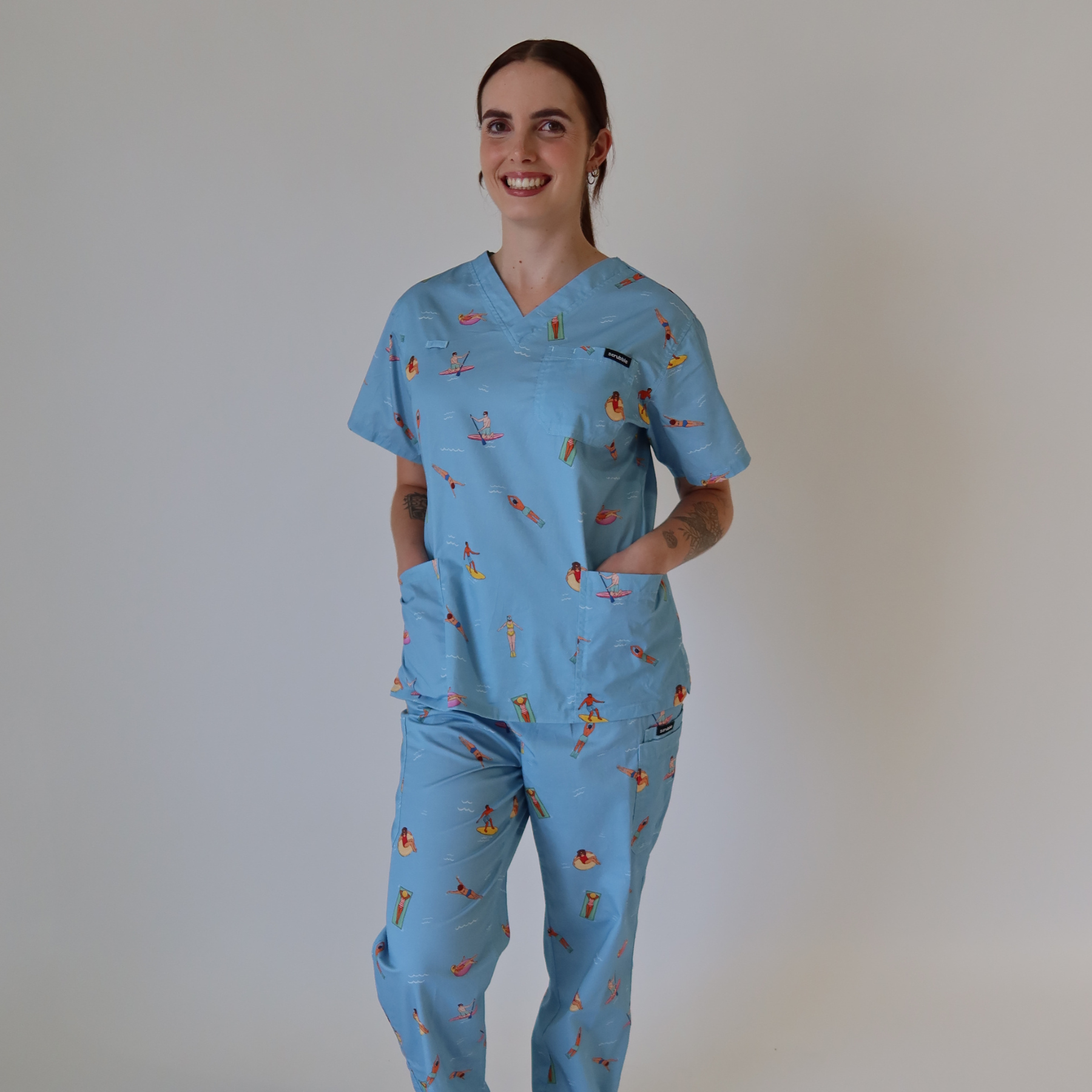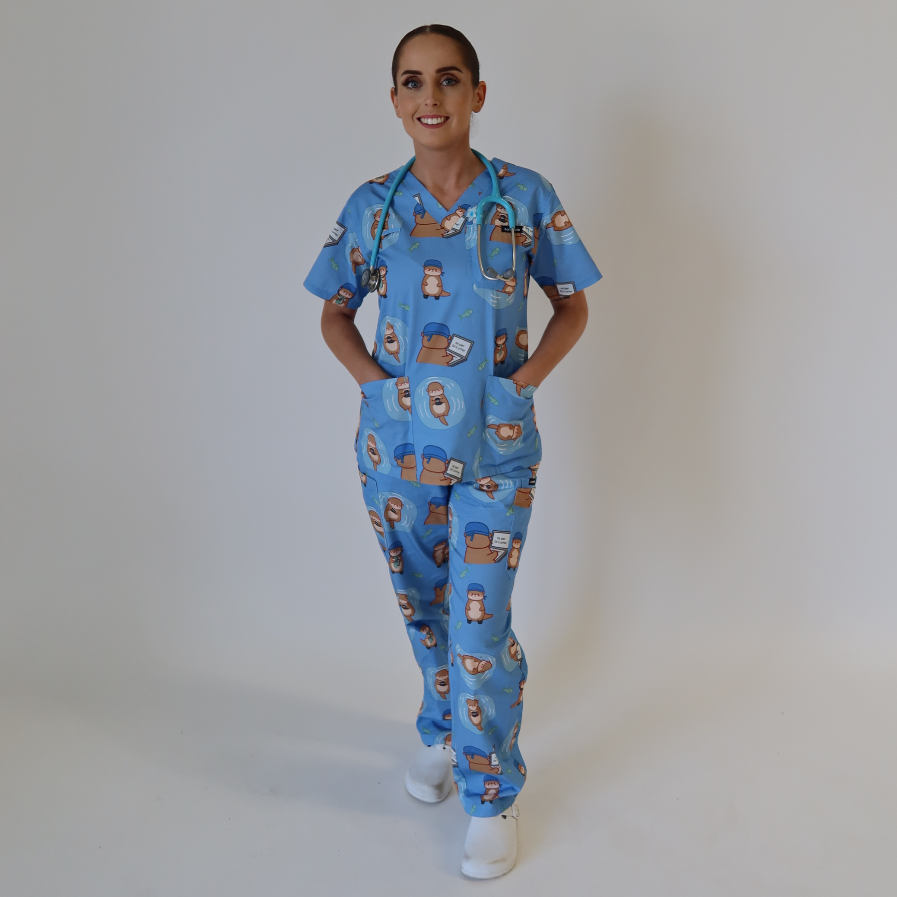 I believe scrubs should be more than just workwear - they should bring joy, comfort, and individuality to every shift. I strive to design characters and prints full of personality to match yours, along with accessories that reflect your personal aesthetic and are not only cute, but functional beyond just work"